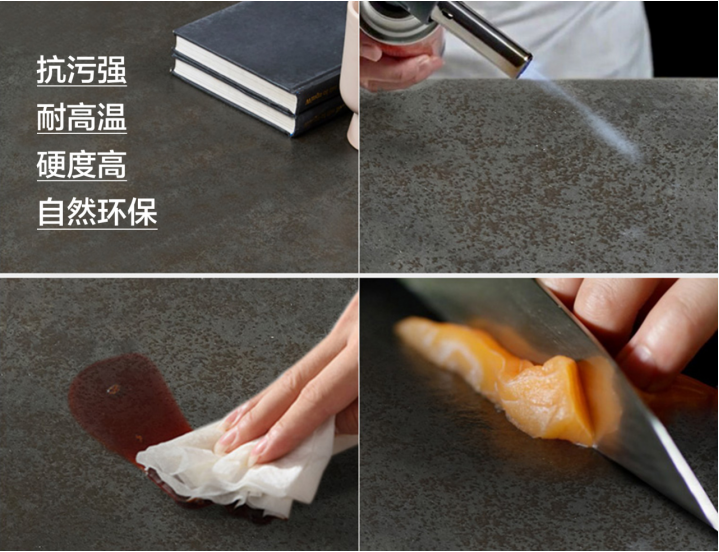 冠睿岩板**的特性是:尺寸大做出的背景效果更好,色彩呈现更诱人;安全卫生,能与食物直接接触,**的选材,**害无辐射,健康环保,还可以使人类可持续发展;防火耐高温:直接接触高温物体不会变形,A1级防火性能的岩板,遇到2000℃的明火不产生任何物理变化(收缩,破裂,变色),也不会散发任何气体或气味;抗污性:万分之一的渗水率是人造建材界的一个新指标,污渍无法渗透的同时也不给**滋生空间;耐刮磨:莫氏硬度超过6度,能够抵御刮蹭和尝试刮擦;耐腐蚀:耐抗各种化学物质,包括溶液、**剂等;易清洁:只需要用湿毛巾擦拭即可清理干净,无特殊维护需求,清洁简单快速;全能应用:打破应用边界,由装饰材料向应用材料跨界进军,设计、加工和应用更加多元和广泛,满足高标准的应用需;灵活定制:岩板的纹理丰富多样,可根据用户需要私人定制。